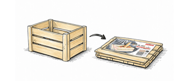 Folded flat for transport, saving up to 8× more space compared to rigid boxes.